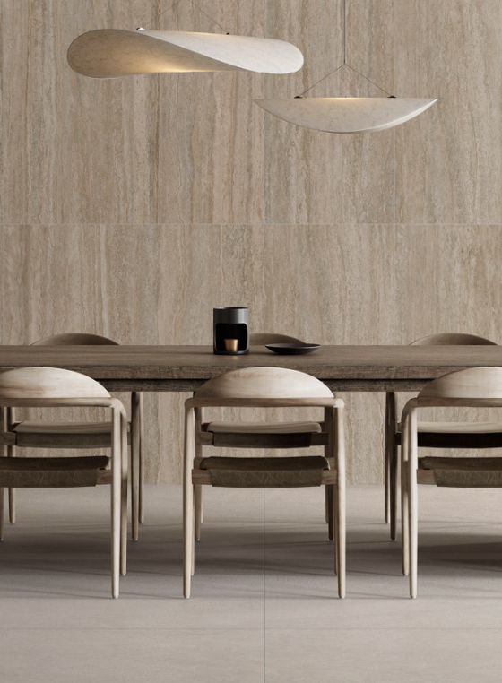 Inspirándose en la misma naturaleza, esta serie evoca la serenidad y resistencia de las rocas milenarias. Disponible en dos formatos de 60×120 y 120×120 así como en cinco acabados acabados diferentes, estas piezas permiten al arquitecto crear ambientes sofisticados, atemporales y elegantes.